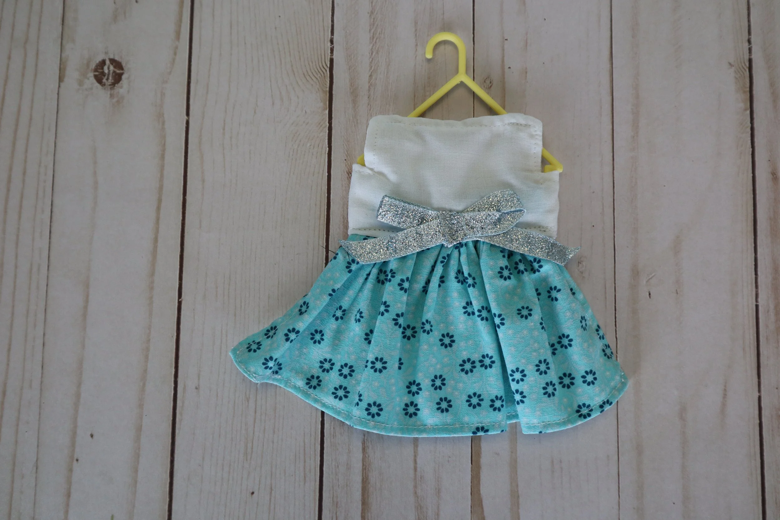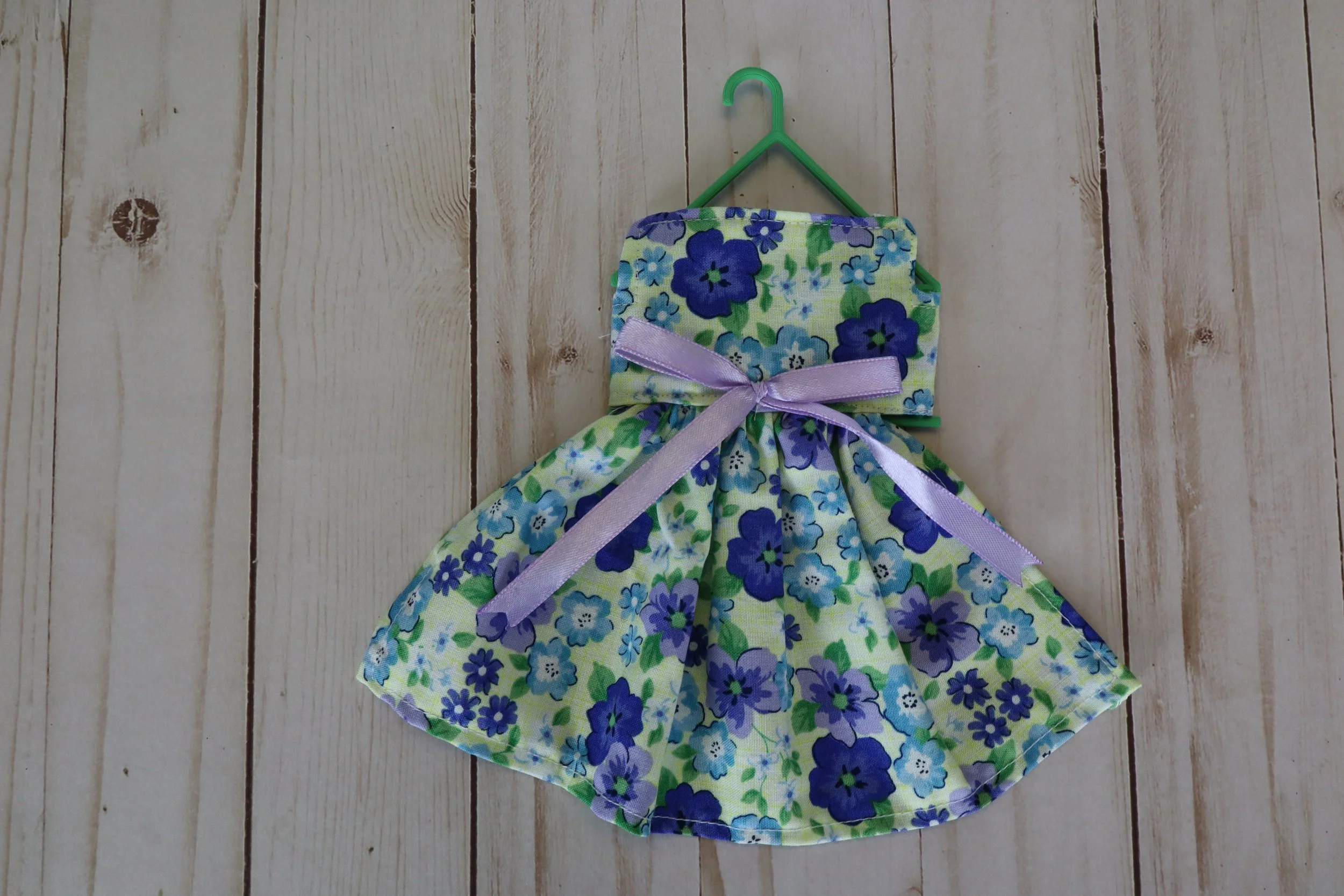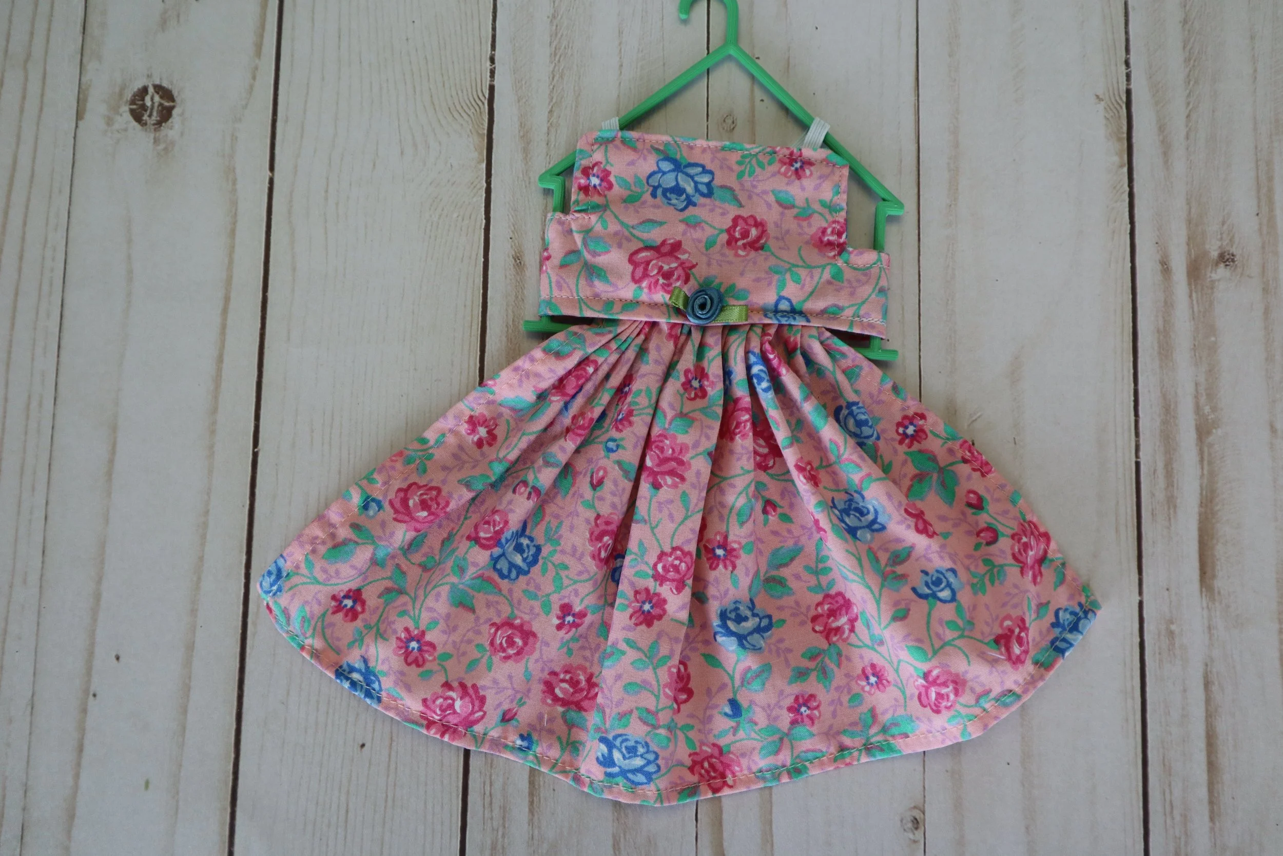 Pink and Blue Floral Print Dress with Blue Rosette 2021
