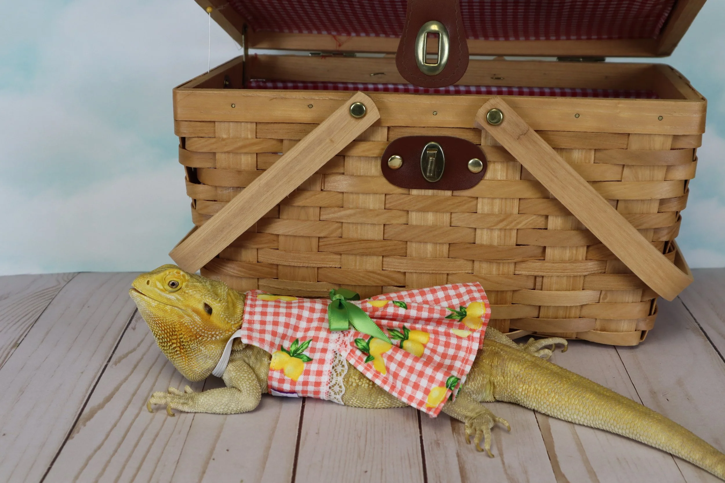 Clementine Modeling the Lemon Print with Red Gingham Dress with Green Bow 2023